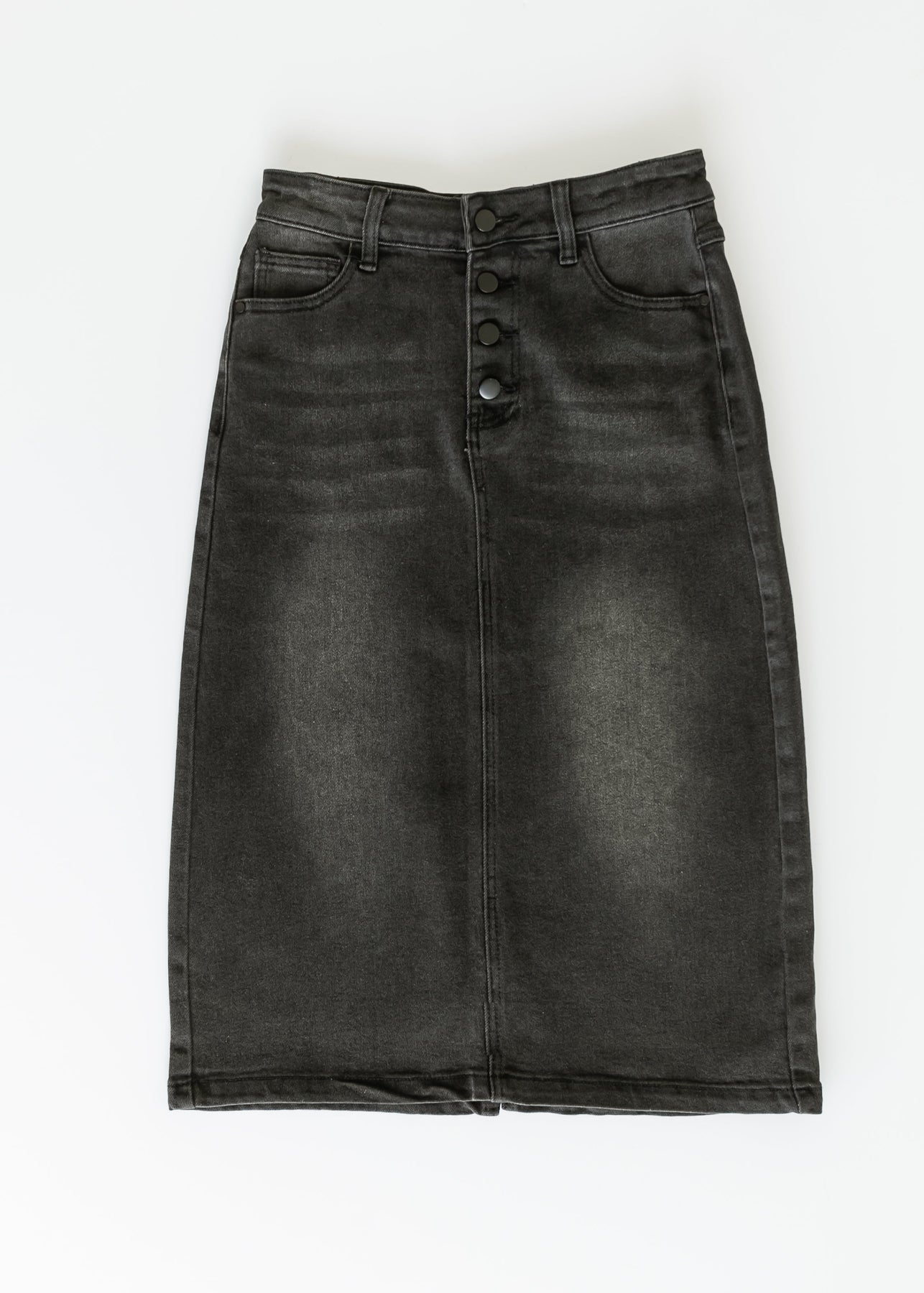 The Tiffany Raw Hem Midi Skirt is a versatile piece made for effortless, modest style. Crafted from soft black denim with a hint of stretch, it moves with grace through every season. The raw hem and button-front detail bring a modern touch, while the classic silhouette flatters beautifully. Designed with care and intention, this skirt is truly threaded with purpose™.