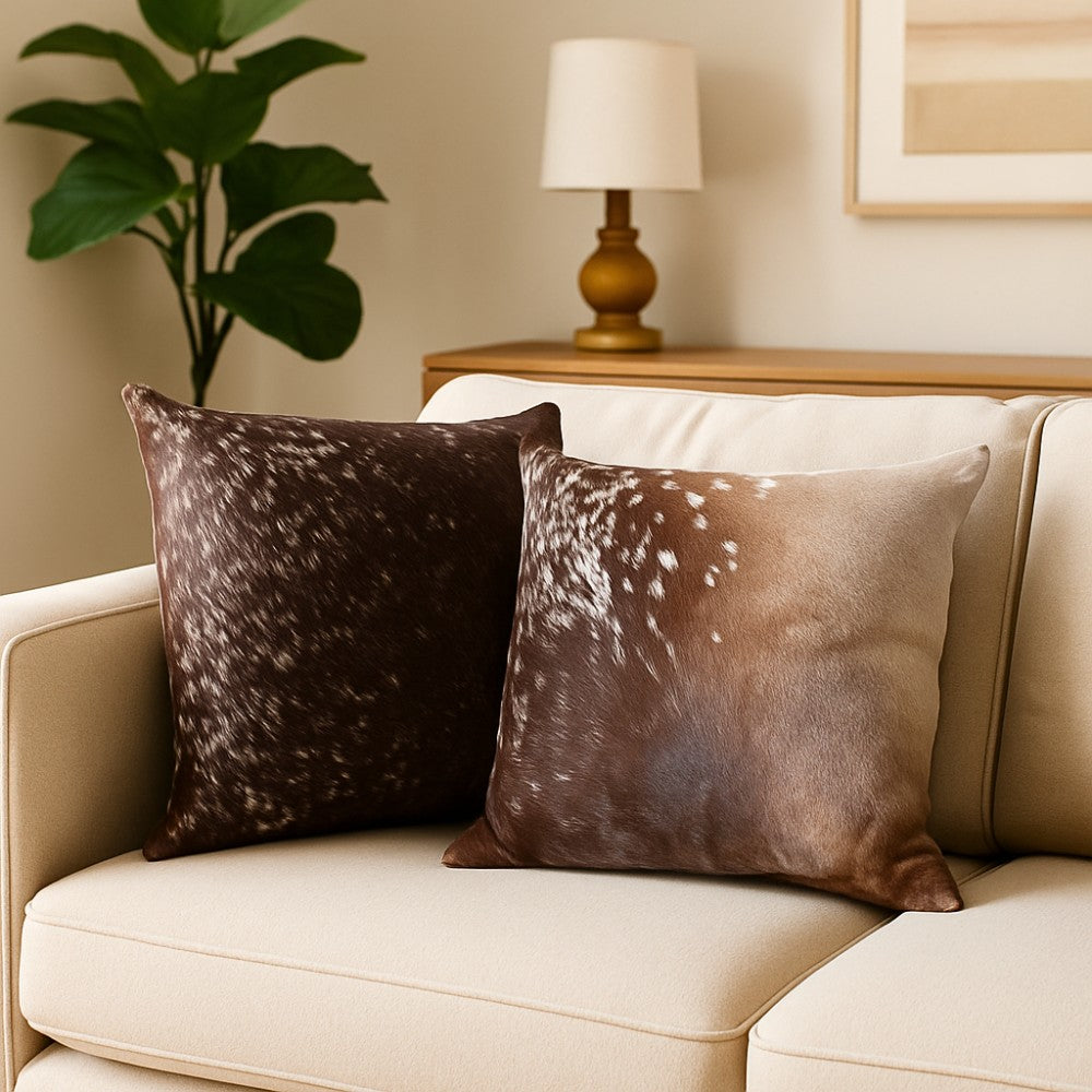 Rustic Cowhide Throw Pillow – Genuine Cowhide Front with Leather Back