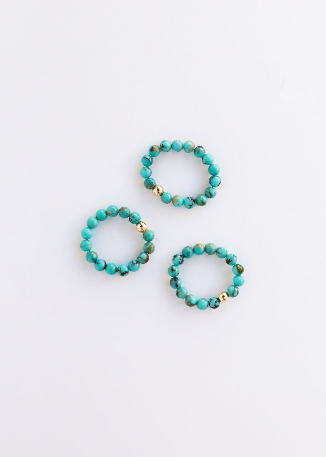 Handmade from locally sourced stones, our beaded Turquoise rings have been adorned by many and is often worn as a minimalistic statement piece. Turquoise holds the belief of soothing the soul and calming the soul. It holds a healing belief to improve your overall mental state and increasing your positive mental characteristics of creativity, empathy, positive thinking, sensitivity, intuition and happiness.