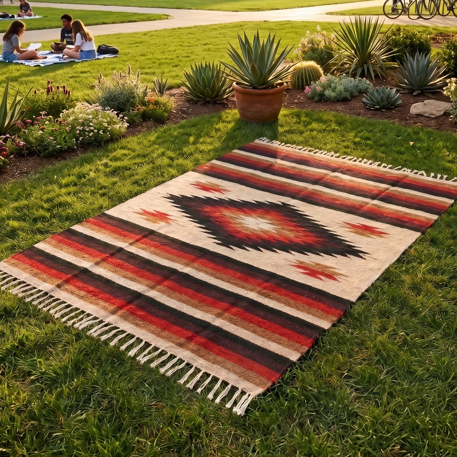 Our Aztec Blankets are sometimes referred to as “Mexican Diamond Blankets,” “Navajo Blankets,” or “Indian Blankets” because they feature a traditional center diamond design and rich colored stripes.