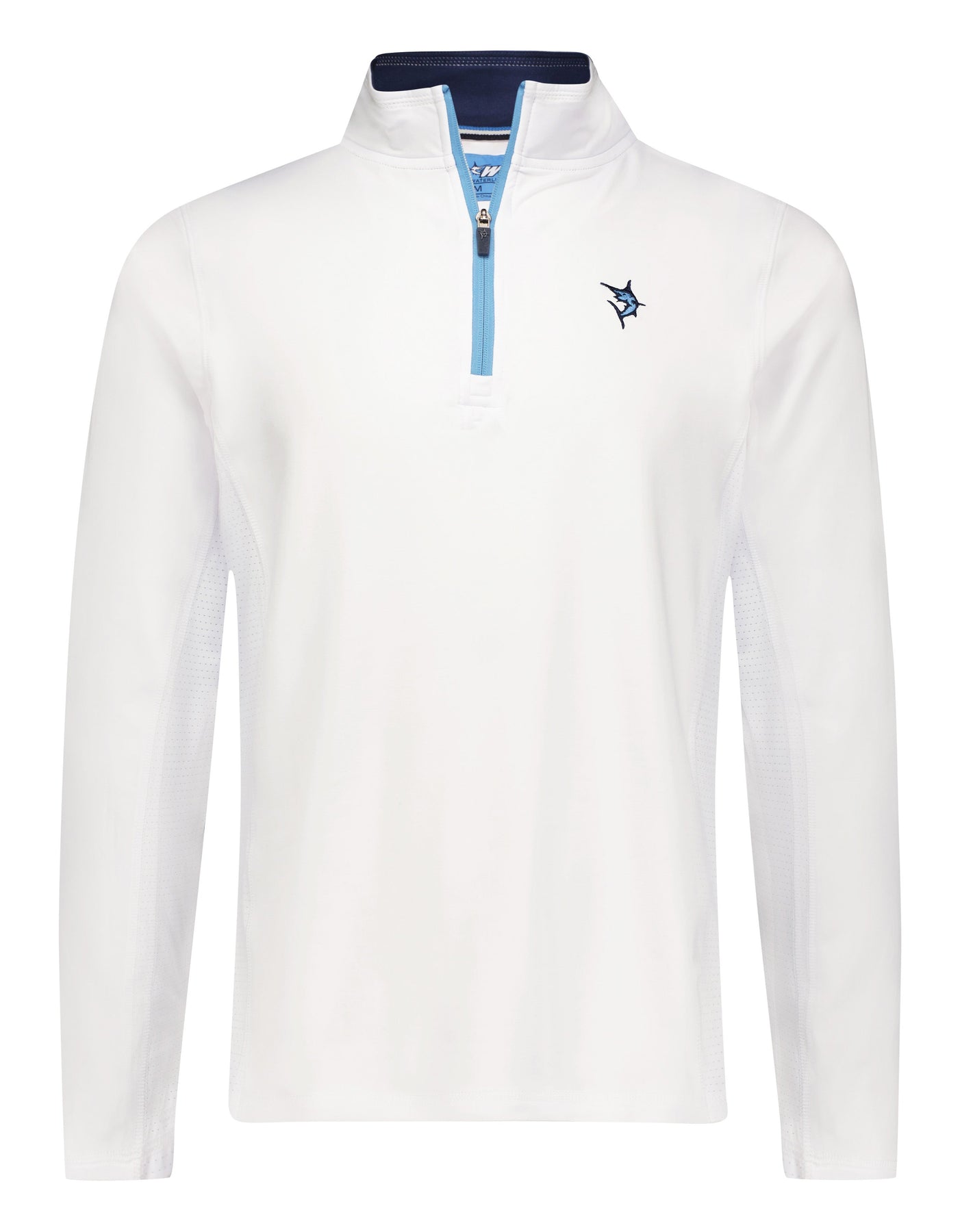 The tip of Long Islands east end. Montauk is famous for many things and just a great place to visit with family and friends. The Montauk 1/4 zip pullover features soft brushed poly spandex and side venting, for a great hand feel and just the right amount of stretch. Great for a harbor walk, out to dinner or a round of golf when a long sleeve top is needed.