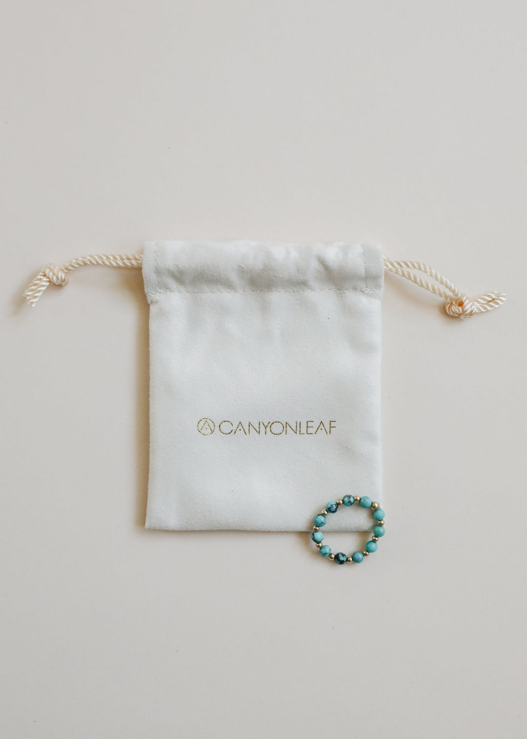 Natural Turquoise + 14k Gold Filled Sun || Stretch Ring