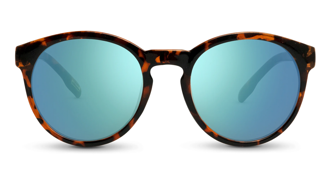 Glossy Brown Tortoise Frame - Blue Mirror Lens