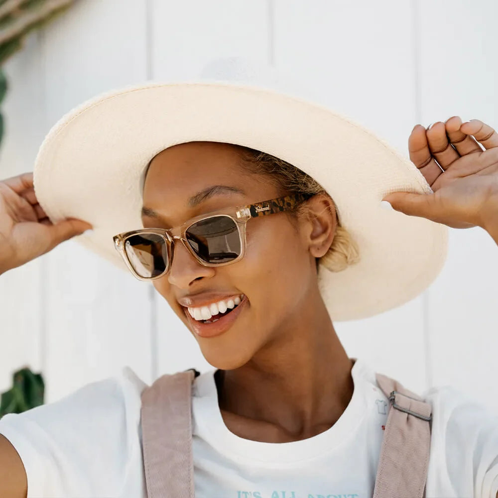 We knew the sharp, stylish Seventy Nines frame style would be perfect with this vintage-inspired colorway. On the Rocks Seventy Nines are the perfect choice for anyone who loves a warmer toned pair of polarized sunglasses. These smaller shades are great for anyone with a small to medium-sized face who doesn’t want a pair of sunglasses that overwhelms their features.