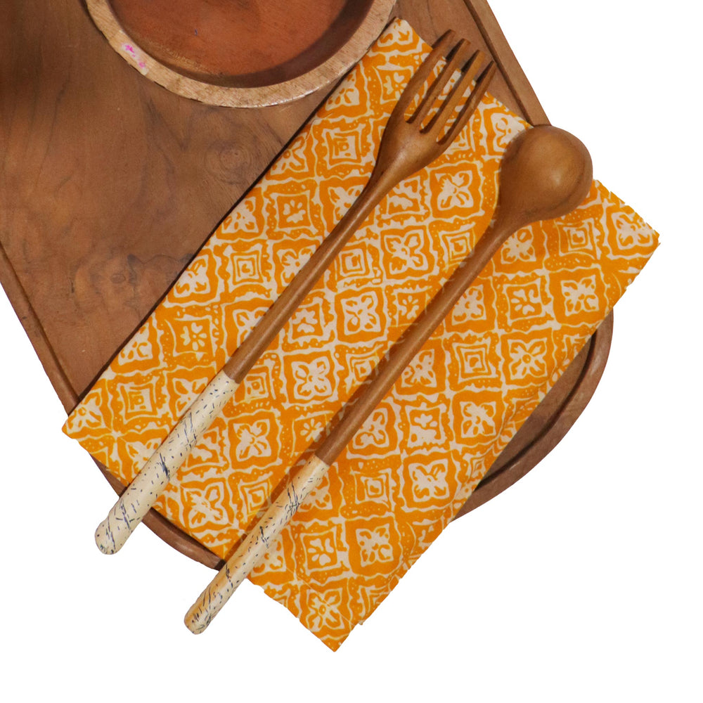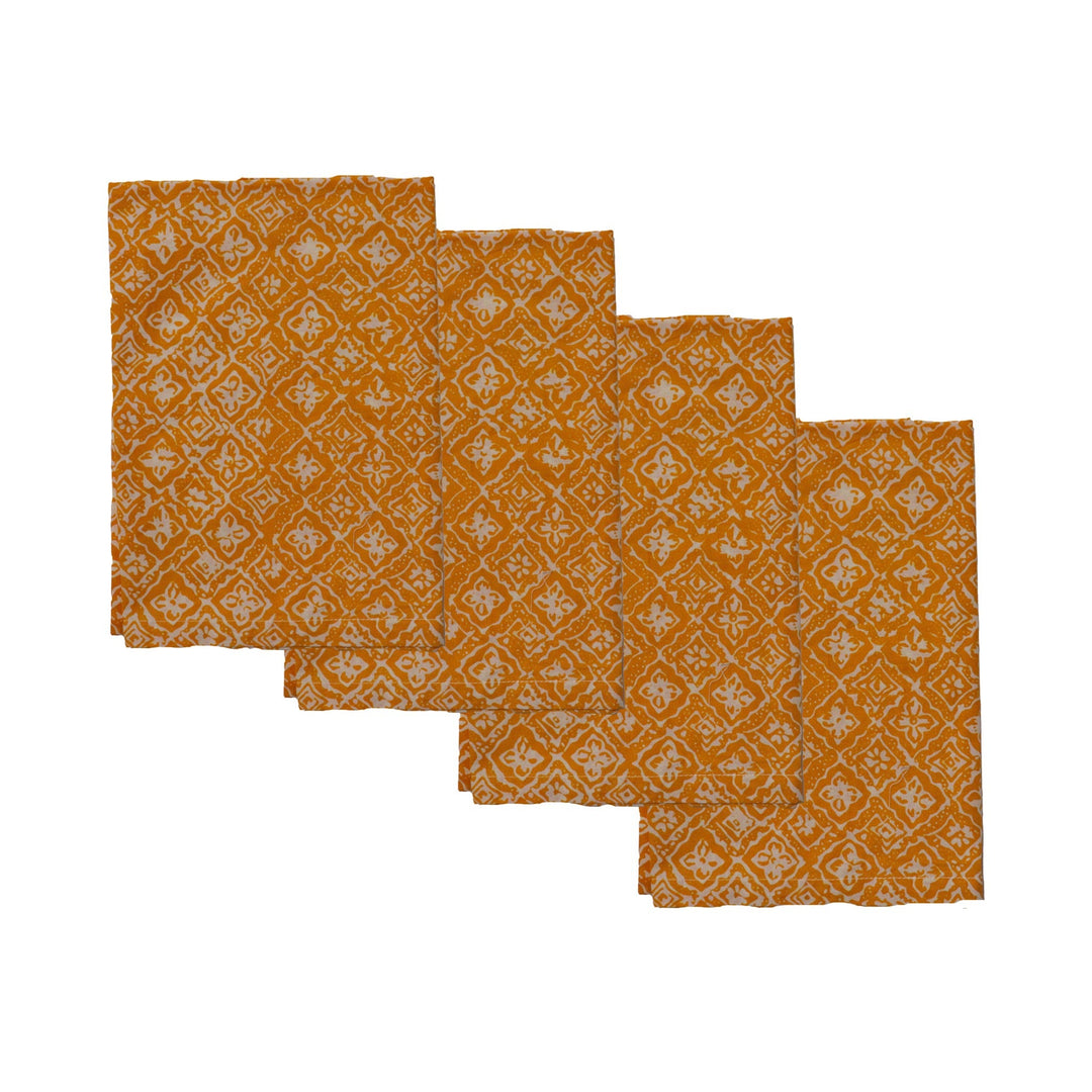 Batik Cloth Napkin Set of Four, Kamboja, Hand Dyed, 100% Cotton, Mustard, Yellow, Brown
