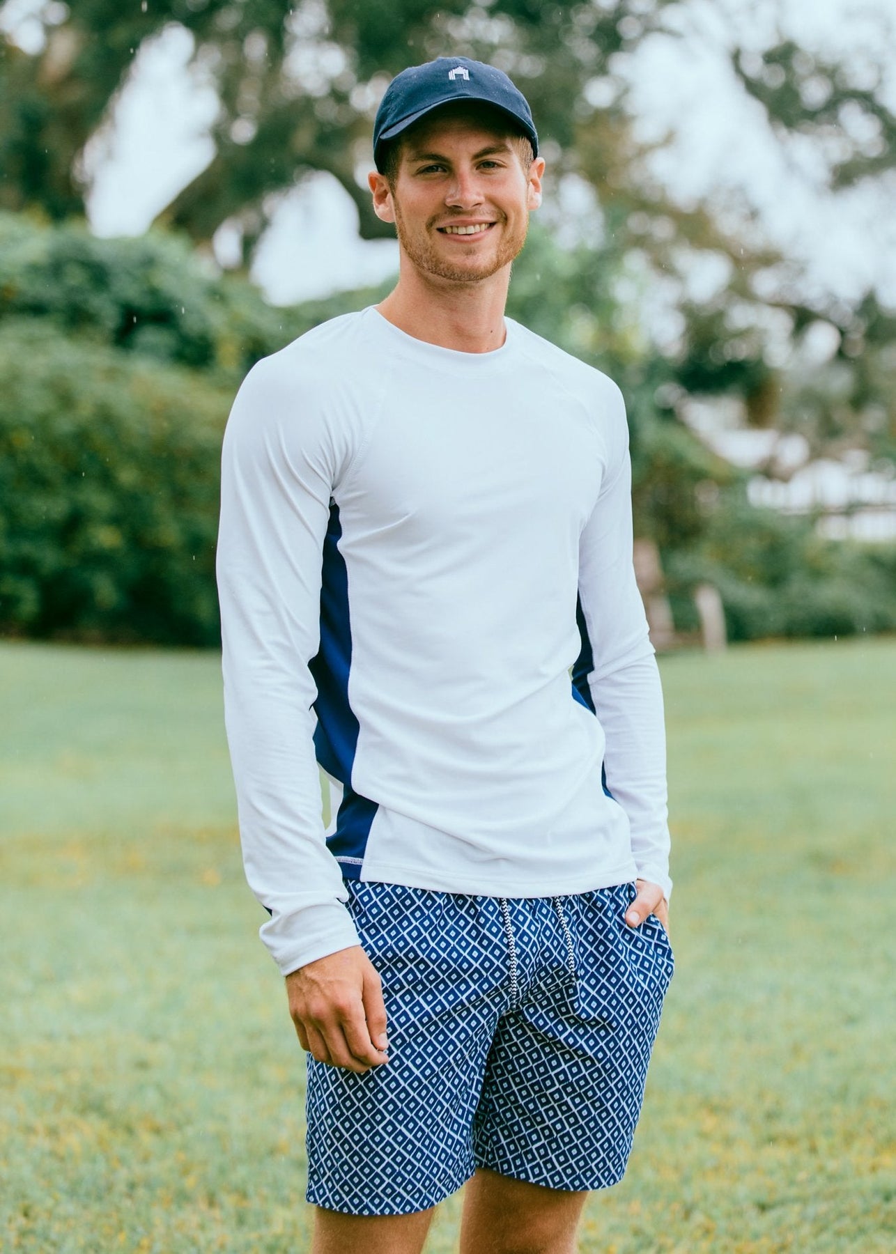 Beach hair, don't care! Our new navy baseball hat is perfect for any and all days in the sun. Made from 100% bio-washed chino twill, this embroidered logo hat gives you a slightly broken in feel. Protect your skin with this UPF 50+ hat and pair with any of our stylish sun protective clothing.