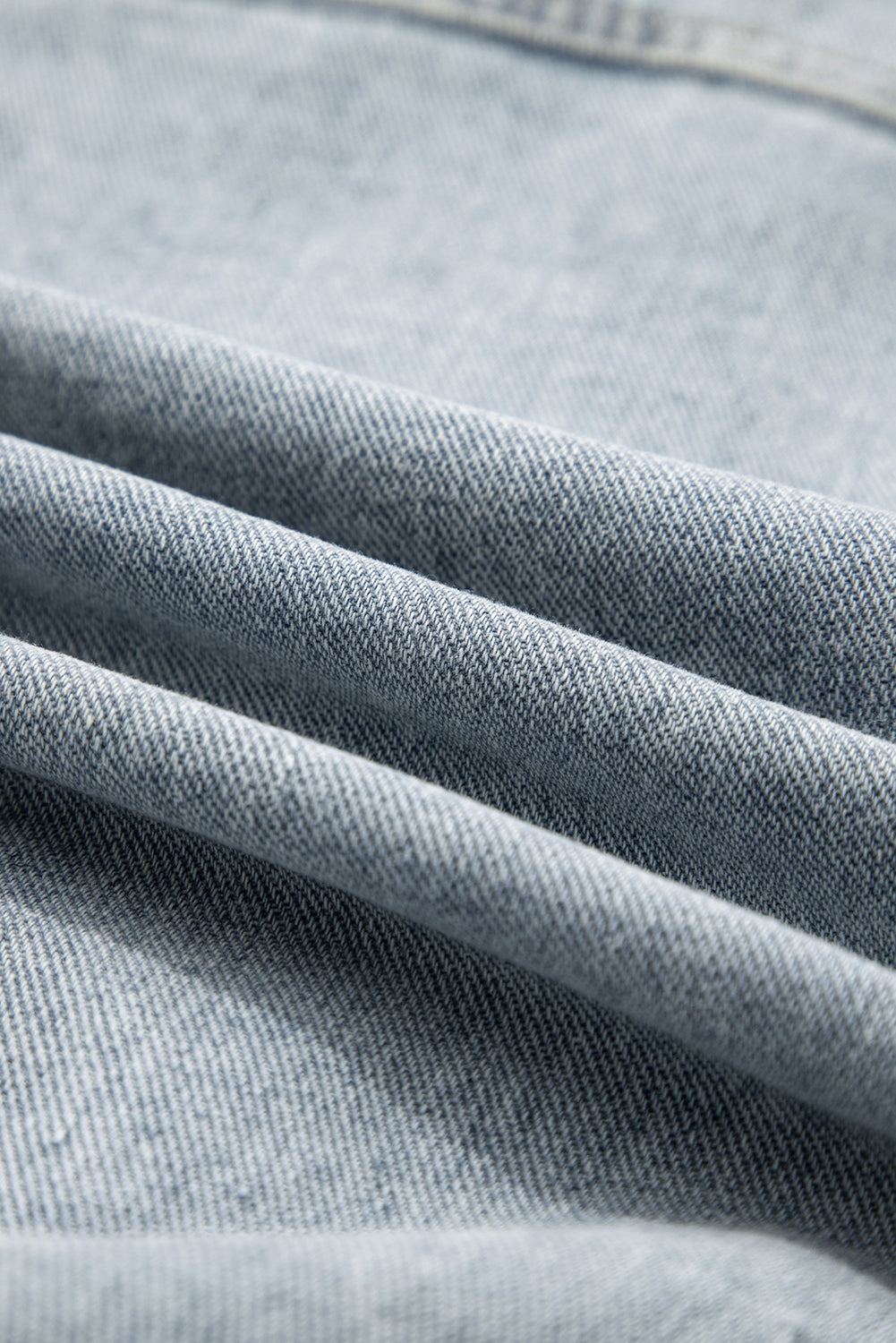 Meet Sophia Zip Up Washed Jacket—effortless, flattering, and easy to style for everyday life. This womens denim jacket is a must-have for chic city vibes. Its trendy design and laid-back energy make it perfect for layering. Collared neckline with button closure, long sleeves with rolled cuffs and functional pockets. A relaxed silhouette that ends in a straight hemline with a button for secure closure. denim jackets are stylish and durable for wearing.