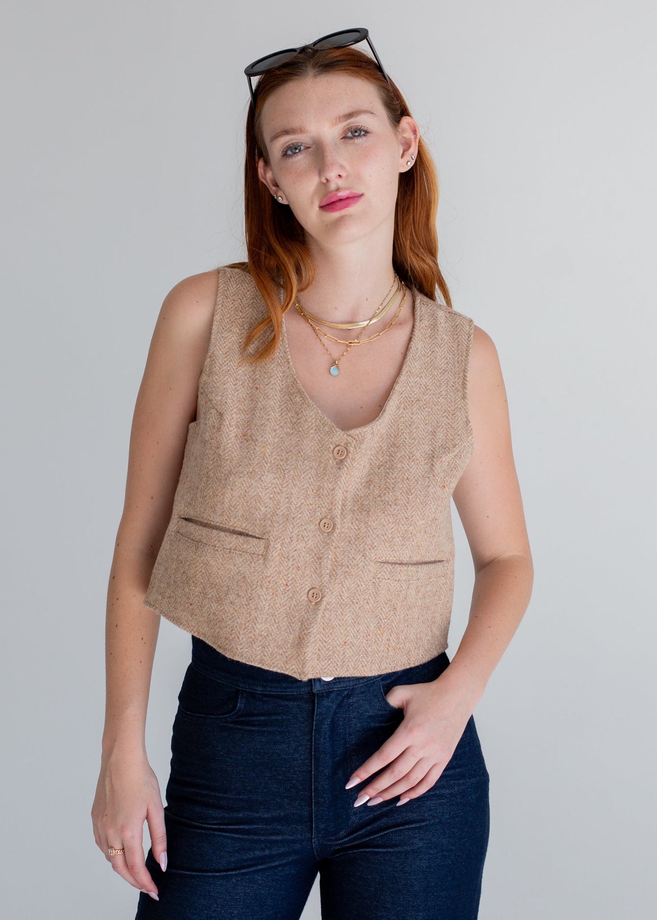 A warm and stylish wool vest. Inside lined with viscose for breathability. Perfect for feeling comfortable while out and about. Pair with our Wool Flare Skirt for the full set.